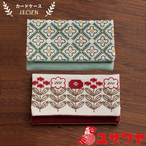 ルシアン 刺しゅうキット 地ざしカードケース 2307(赤い花のサンプラー) [LECIEN 刺繍キット 地刺し 初心者 戸塚刺しゅう] LECIEN カードケース 名刺やポイントカードなどを入れるのに最適なサイズのカードケースです。